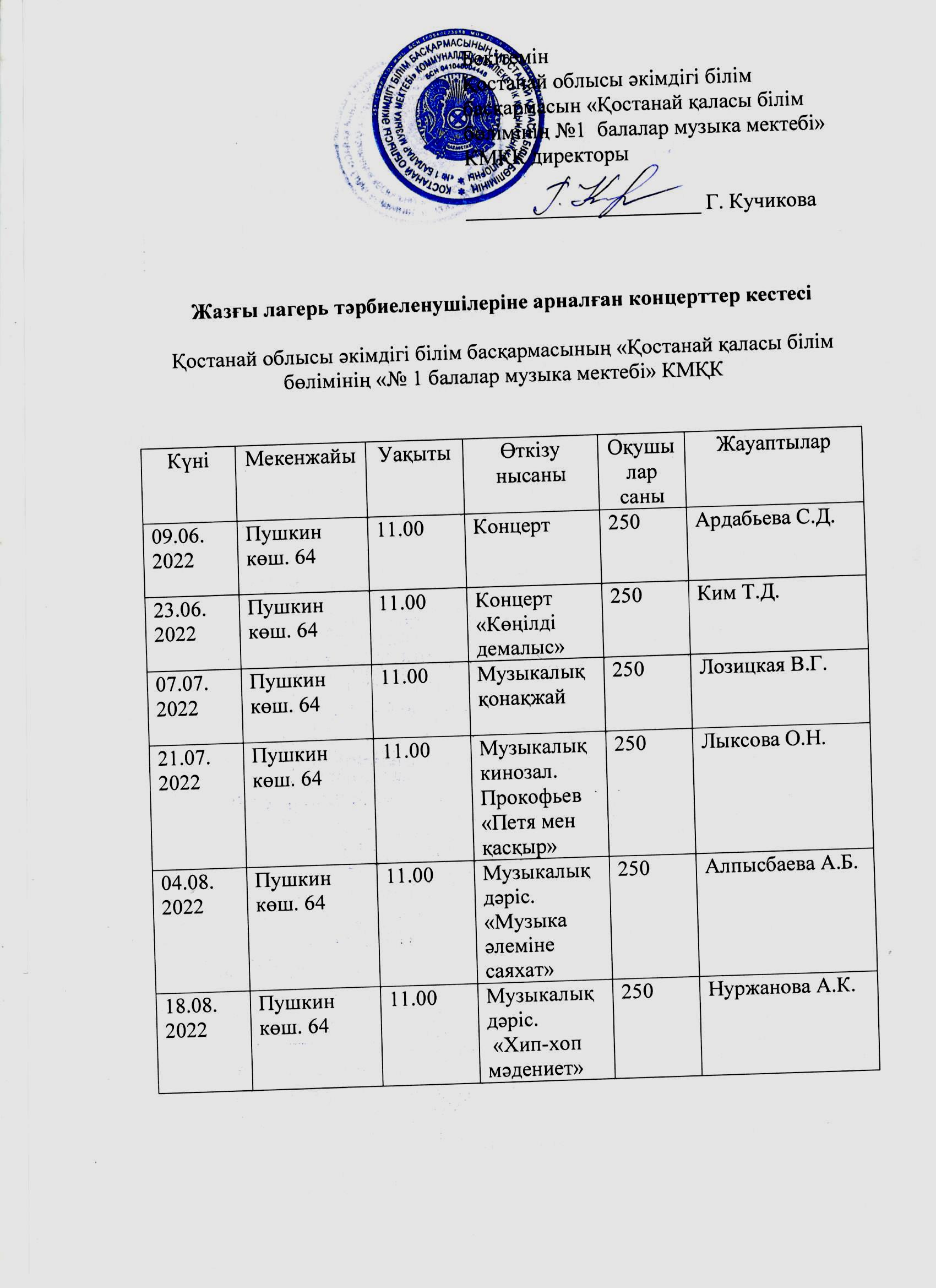 Мектеп жанындағы лагерьлерде демалатын тәрбиеленушілерге арналған іс-шаралар жоспары
