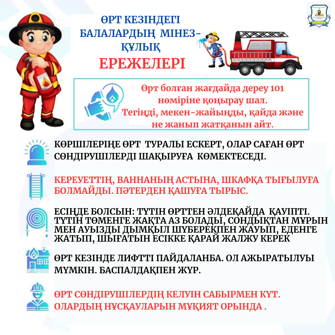 Өрт кезіндегі балалардың мінез-құлық ережелері