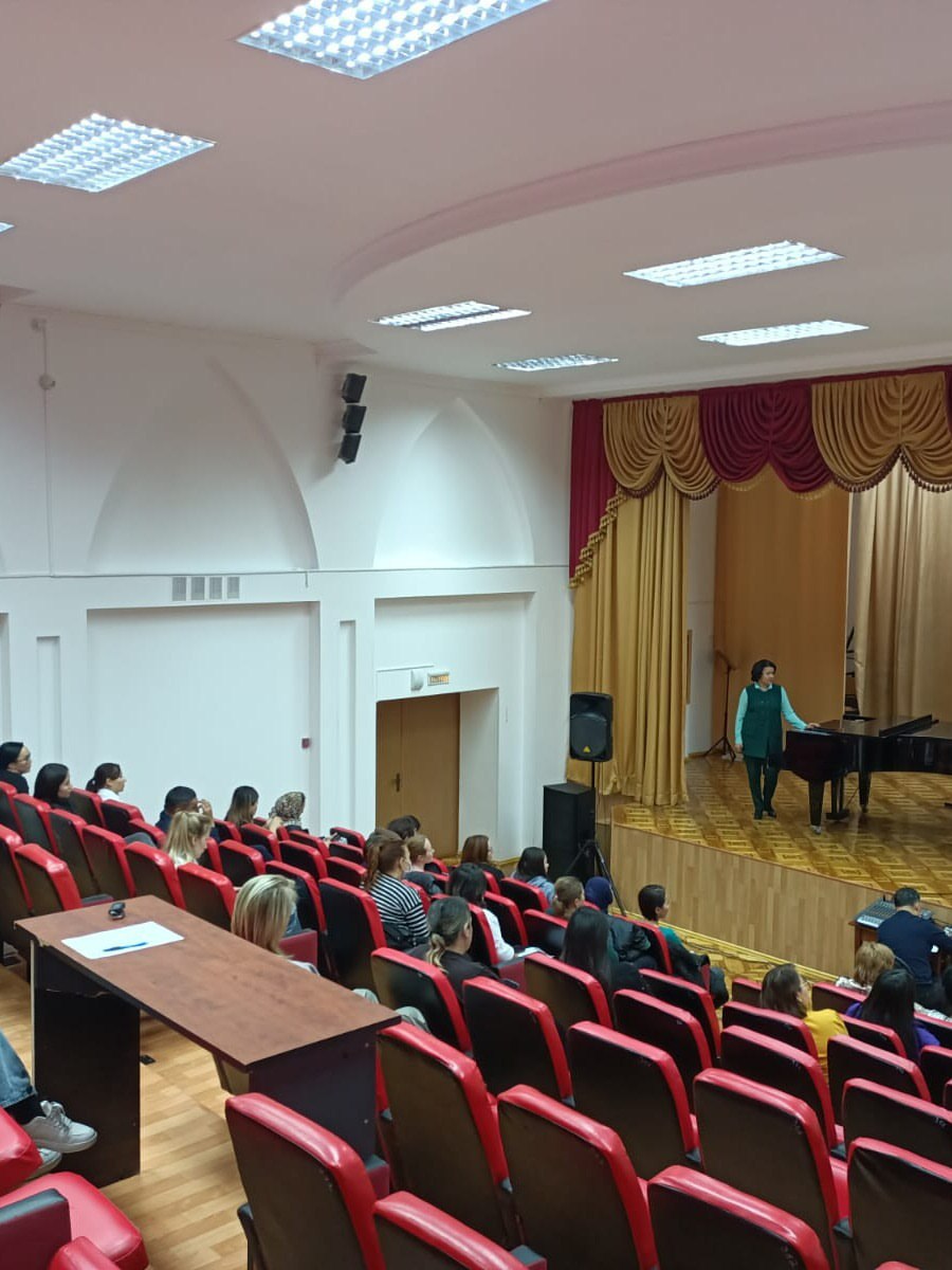 Турлубаева Д. К. бірінші сынып оқушыларының оқу процесіне бейімделуі және «Жалпы фортепиано» пәнінің музыкалық дағдыларды дамытудағы маңызы туралы дәріс-консультация өткізді. Сондай-ақ, күн тәртібі мен үй тапсырмасын ұйымдастыру бойынша кеңестер берді.