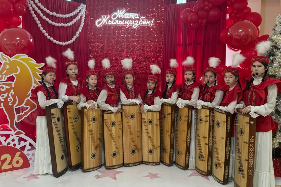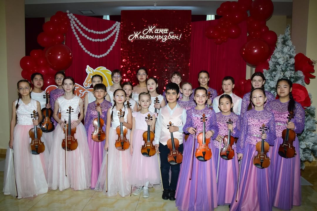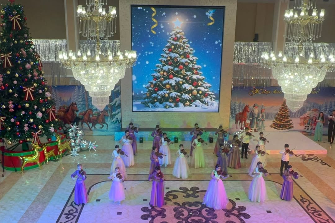 Жарқыраған жаңа жылдық шырша мен мерекелік шамдардың астында әуен залды жылулыққа, нұрға және сиқырлы көңіл күйге бөледі. Бұл өнер көрсету балалар үшін қуанышты оқиға ғана емес, сонымен қатар маңызды шығармашылық жетістік болды. Көрермендер жас орындаушыларды ерекше ықыласпен қарсы алып, шынайы алғыстарын білдірді, ал жас музыканттар баршаға нағыз мерекелік көңіл күй сыйлады.