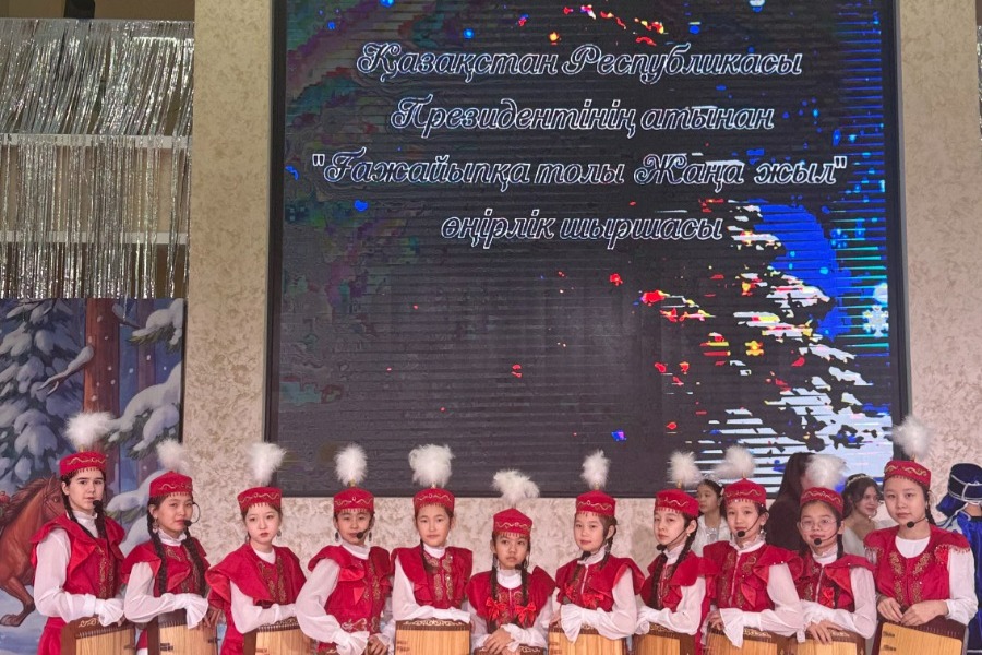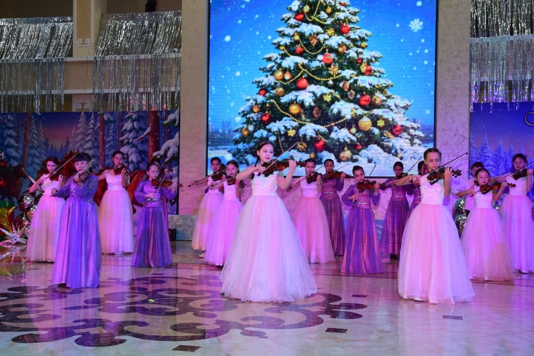 Жарқыраған жаңа жылдық шырша мен мерекелік шамдардың астында әуен залды жылулыққа, нұрға және сиқырлы көңіл күйге бөледі. Бұл өнер көрсету балалар үшін қуанышты оқиға ғана емес, сонымен қатар маңызды шығармашылық жетістік болды.