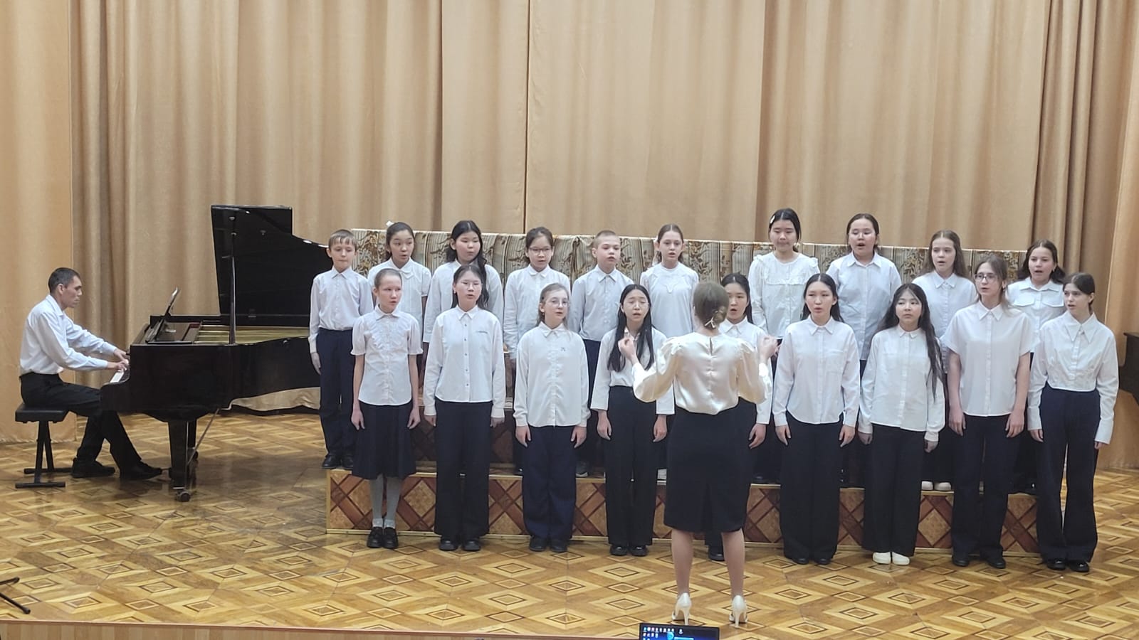 Сахнада екі хор ұжымы өздерінің жарқын бағдарламаларын ұсынып, қазылар алқасы мен көрермендердің жоғары бағасына ие болды.