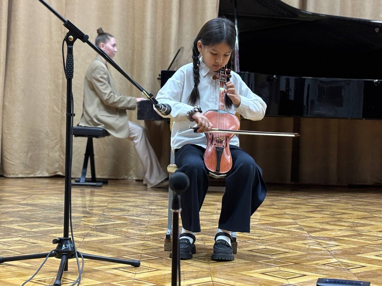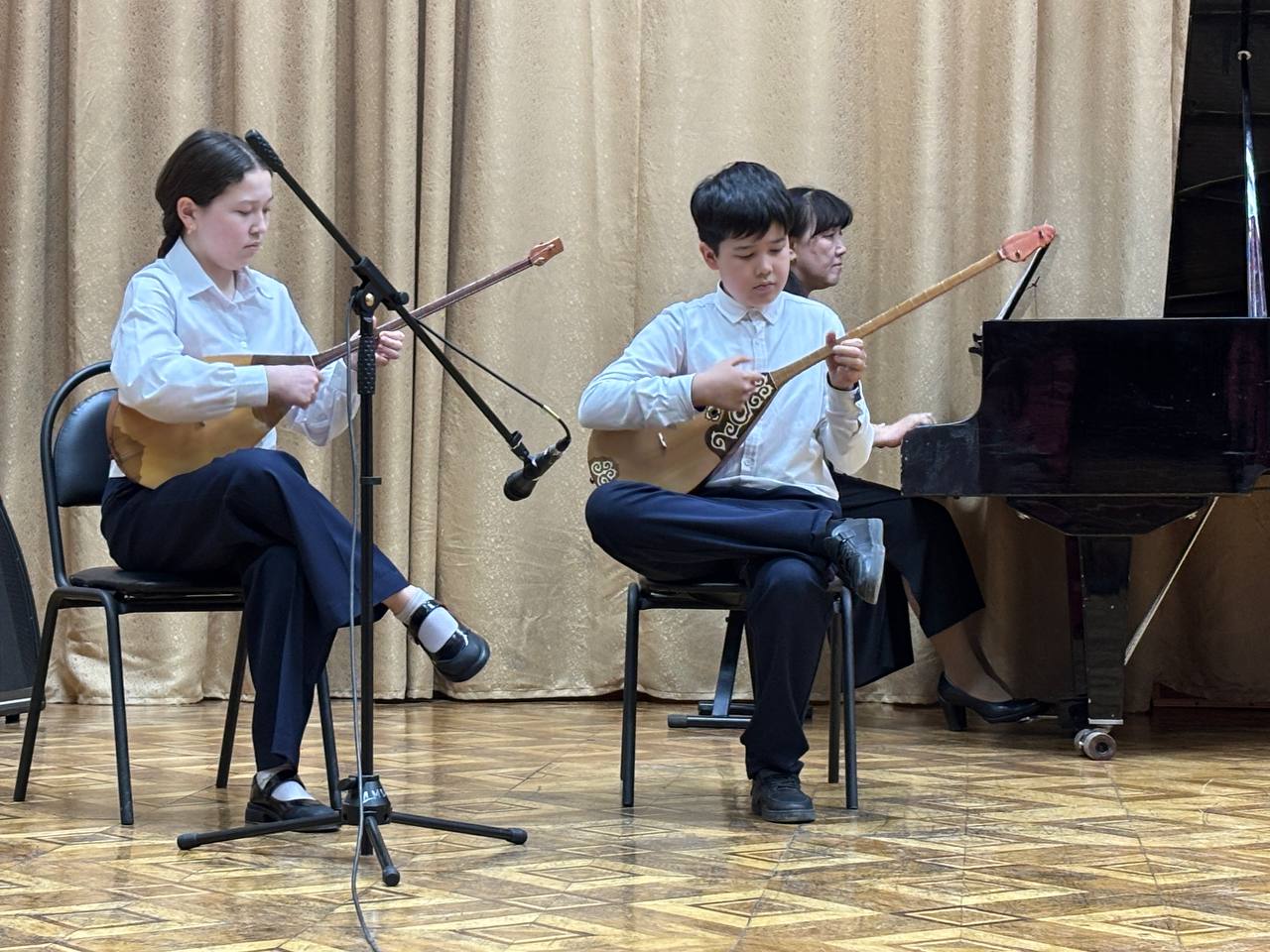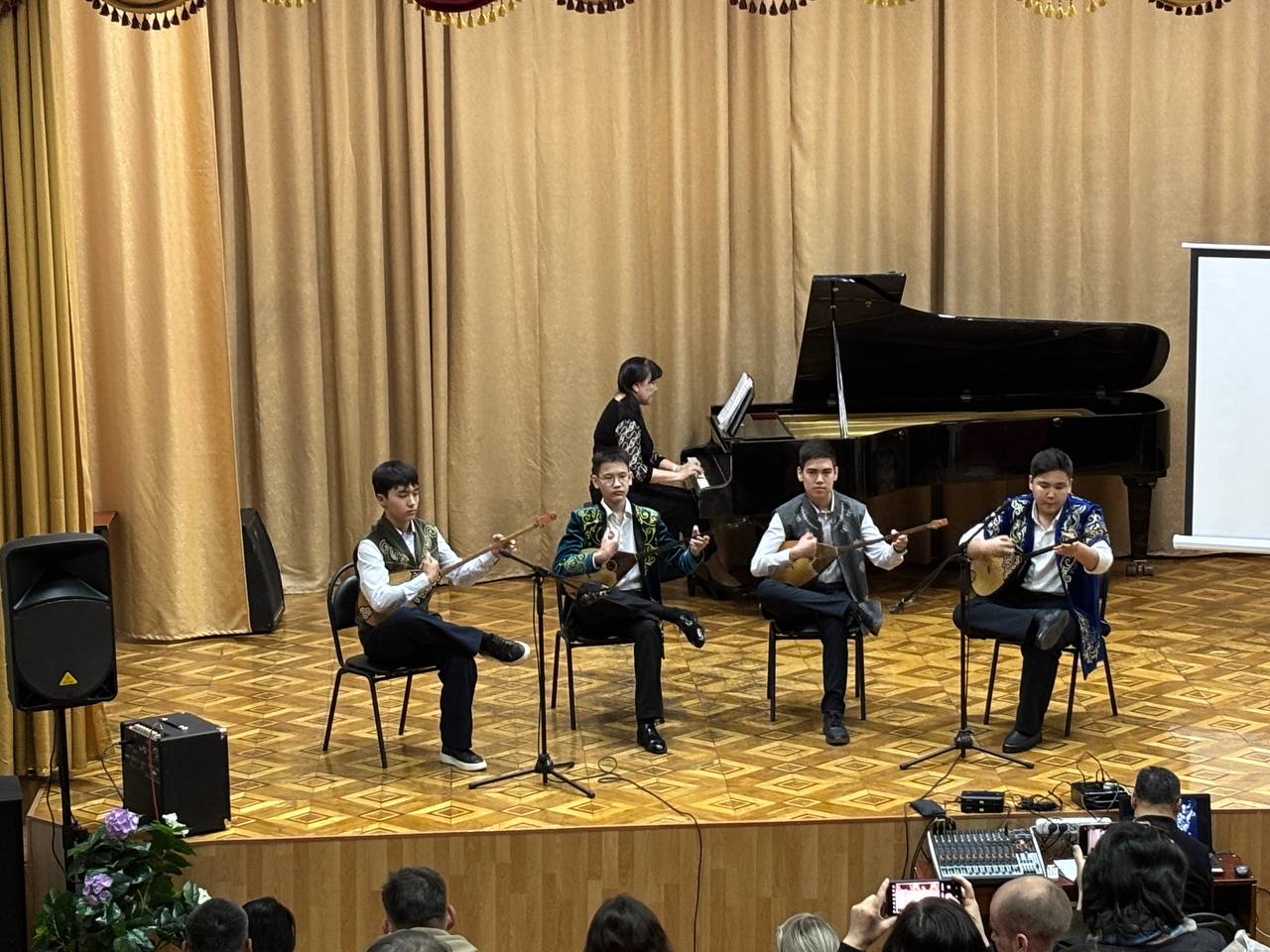 ҚОӘББ «Қостанай қаласы білім бөлімінің №1 балалар музыка мектебі» КМҚК-нда мектептің мерейтойлық концертінің бір бөлігі болған қазақ халық аспаптары бөлімінің есептік концерті өтті. Тәрбиеленушілер домбыра, қобыз және басқа да халық аспаптарында ойнау шеберлігін көрсетіп, дайындықтың жоғары деңгейін растады. Концерт педагогтар мен оқушылар жұмысының жарқын қорытындысы болды және ұлттық музыкалық дәстүрлерді сақтауға және дамытуға елеулі үлес қосты.