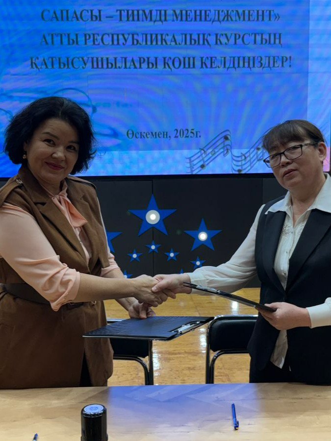 В рамках республиканских курсов повышения квалификации для руководителей организаций дополнительного образования на тему «Эффективный менеджмент – качество деятельности образовательной организации», проходивших в городе Усть-Каменогорск, директор школы Г. Б. Кучикова подписала ряд меморандумов о сотрудничестве с организациями дополнительного образования из разных регионов Казахстана: Восточно-Казахстанской Алматинской, Карагандинской, Северо-Казахстанской, Актюбинской областей и других.