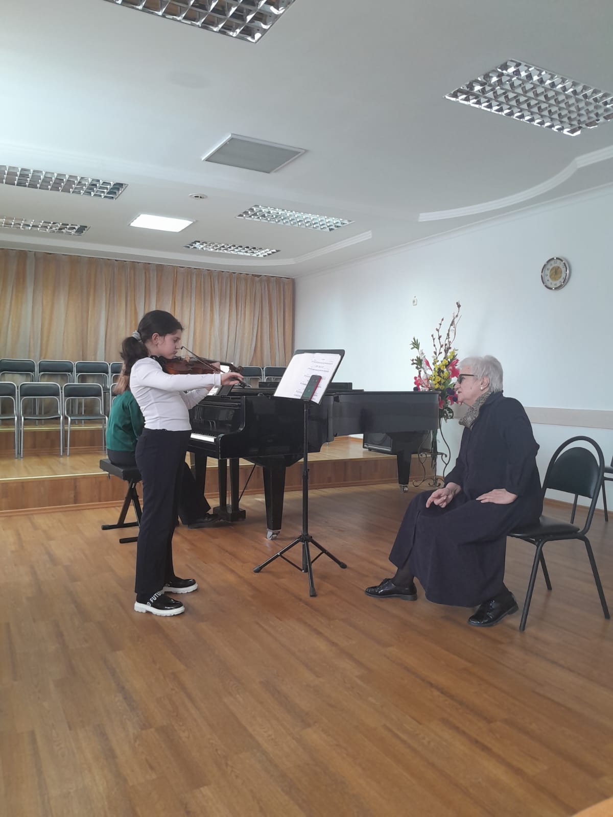 Урок провела один из лучших педагогов-скрипачей Казахстана — Е.П. Тулупова — с ученицей 2 класса. В ходе занятия были продемонстрированы эффективные методы работы над звукоизвлечением, штрихами и развитием музыкально-образного мышления.