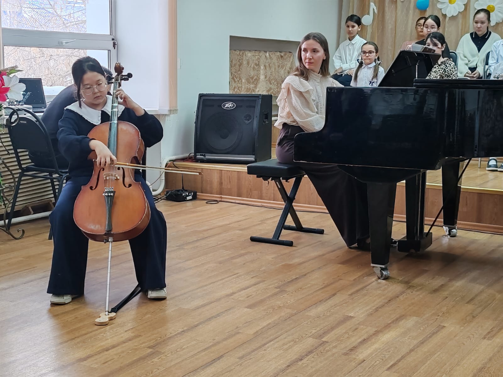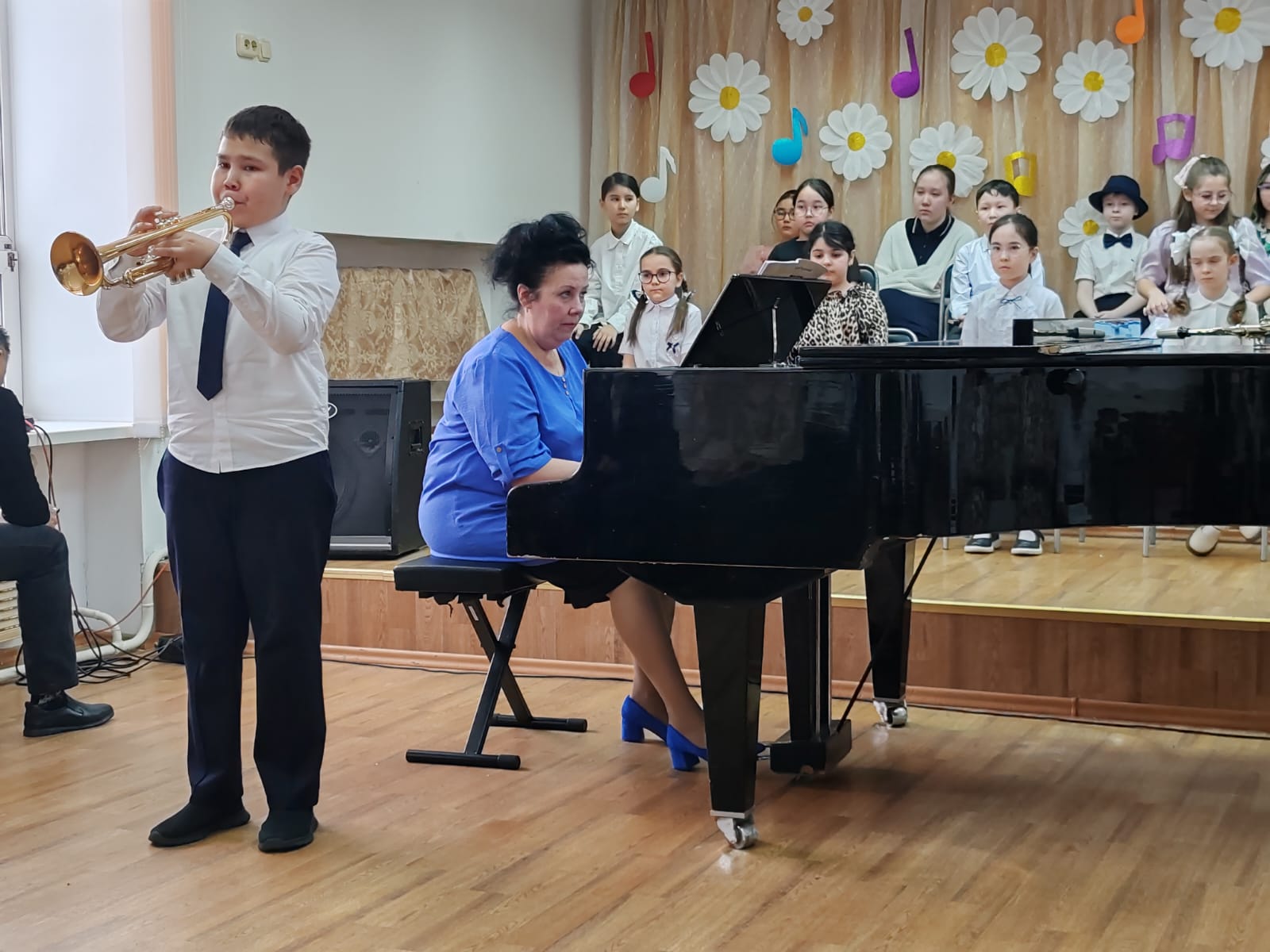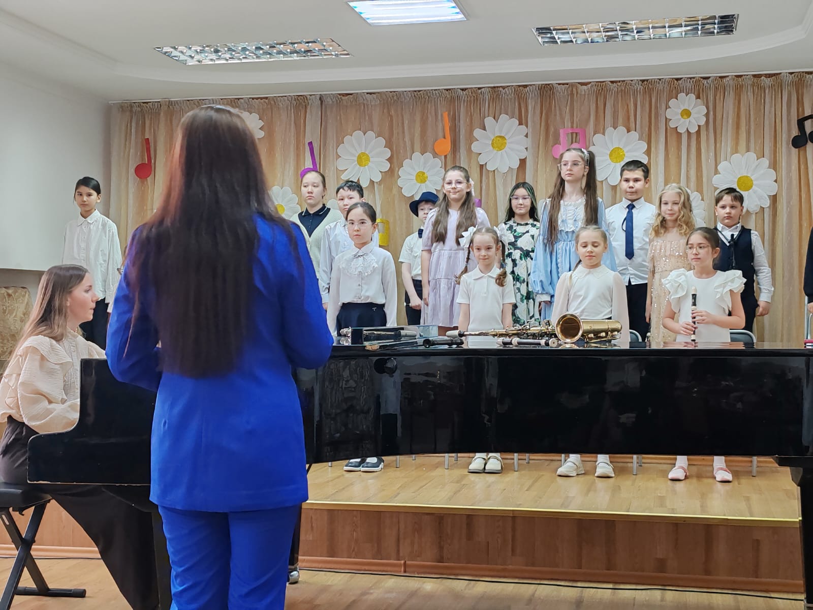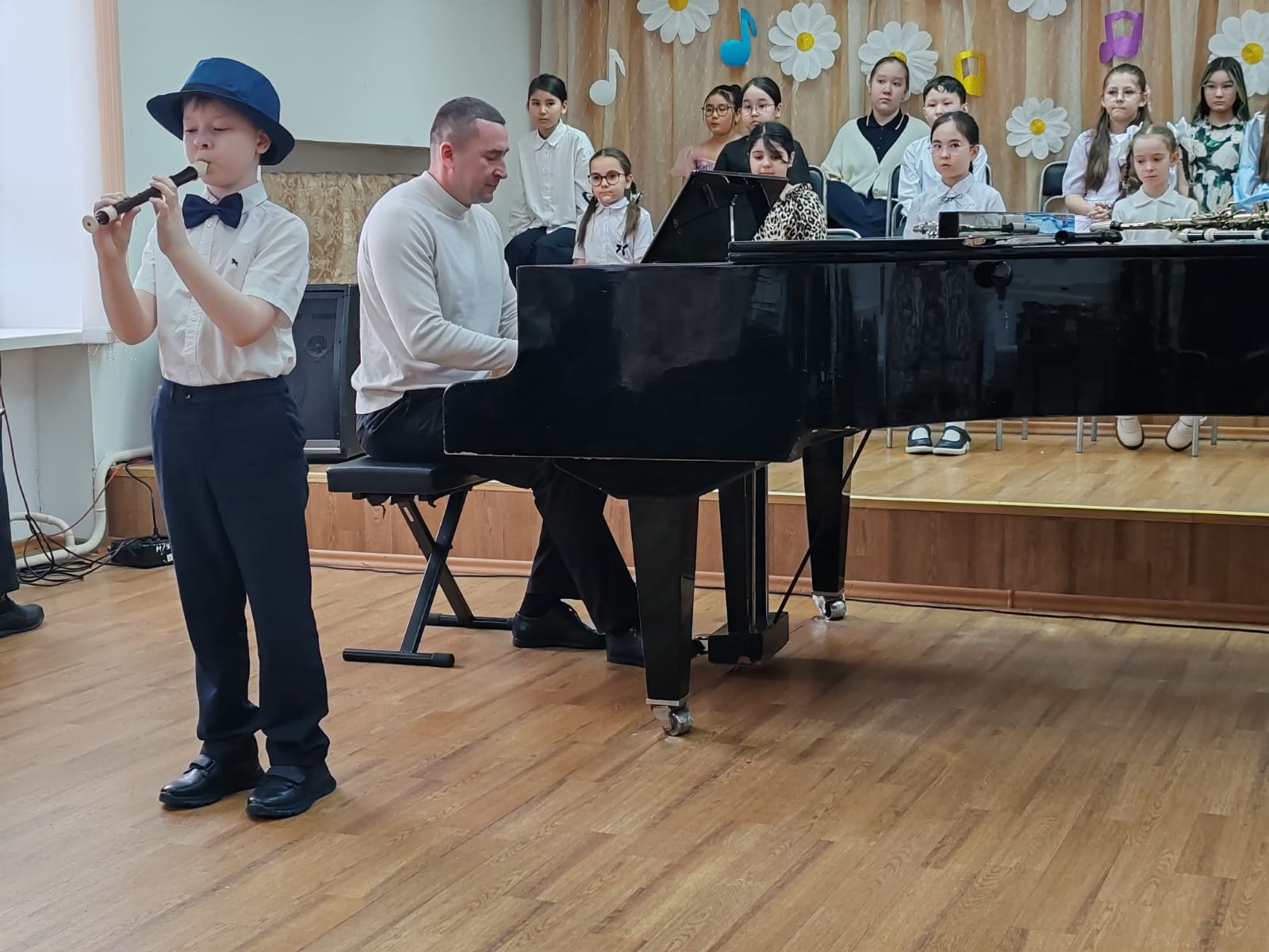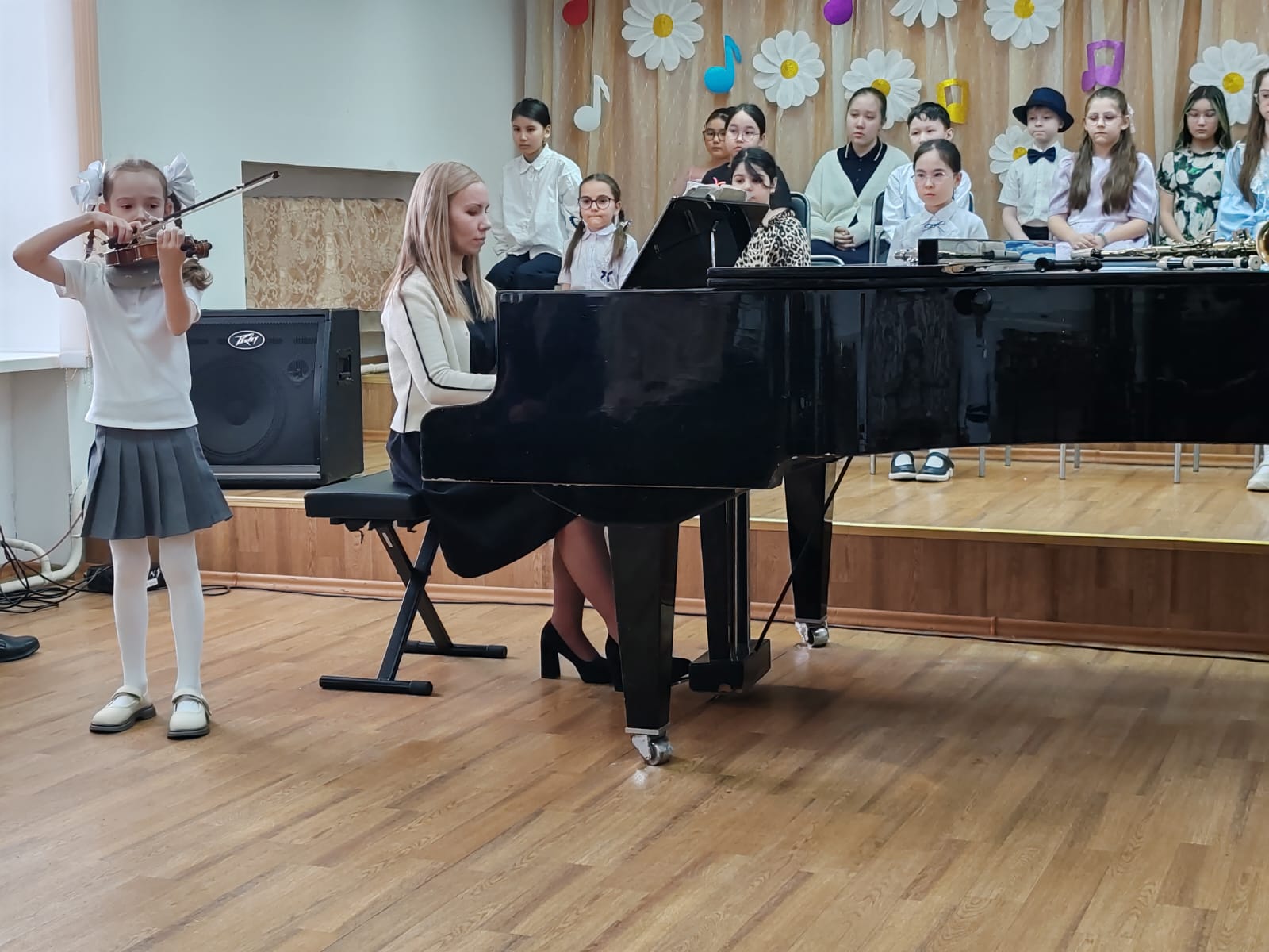 Со сцены прозвучали их первые пьесы на скрипке, виолончели, флейте, трубе и саксофоне — первые шаги в большой мир музыки.